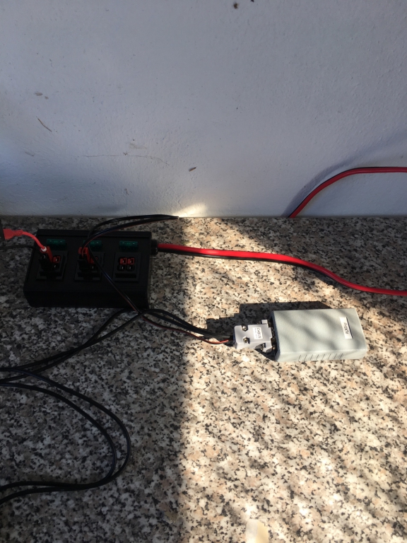 Stromversorgung: Solarstrom (50W Panel) mit 55Ah Blei-Akku als Puffer