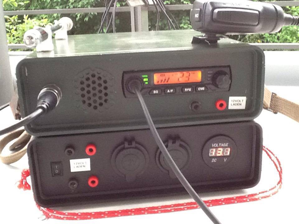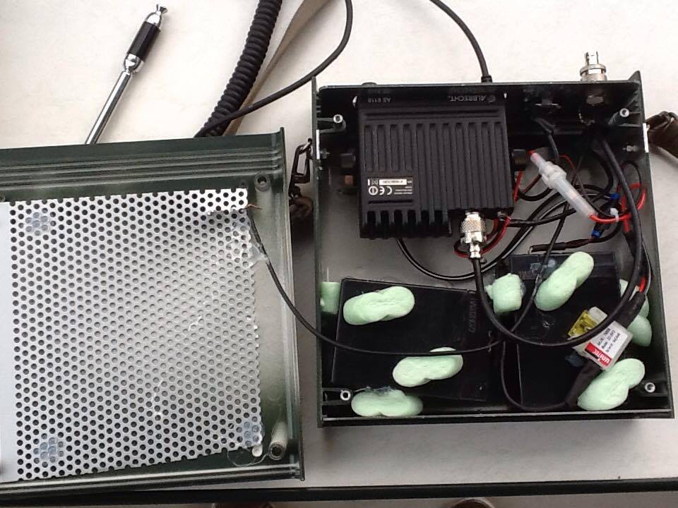 Bei eBay fand ich eines in entsprechender Größe. Jetzt noch einen passenden Akku. Aus Platzgründen nahm ich für dieses Projekt 2x 6Volt Bleigeel Akkus mit 5AH, die ich in Reihe geschaltet habe um auf 12 Volt zu kommen. Einen Mini Breitbandlautsprecher und Bananenstecker Buchsen fand ich auch bei eBay. Erstmal alles bestellt und die Frontblende des Gehäuses entsprechend ausgeschnitten. Das Gehäuse kam ursprünglich in grau also habe ich es umlackiert. Die Antenne ist von einem Handfunksprechgerät und funktioniert sehr gut! Beim letzten Contest habe ich von Königstein im Taunus 450m ünn. zu Hohenrodskopf gefunkt. Die Akkus halten locker 6-8 Stunden Funkbetrieb durch.Eher sogar mehr. Das ganze wiegt etwa 2,5 Kg. Kosten ca. Gehäuse 10,-€, Albrecht 60,-€, Lautsprecher, Kabel, Stecker und Kleinkram 20,-€ die Akkus jeweils 12,-€ Für die Antennen muss man auch nochmal so 30,-€ rechnen alles in allem etwa 150,-€ Mir fehlte jetzt noch eine Powerstation um auch andere Funkgeräte betreiben zu können!